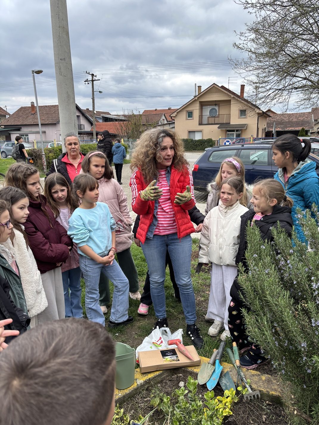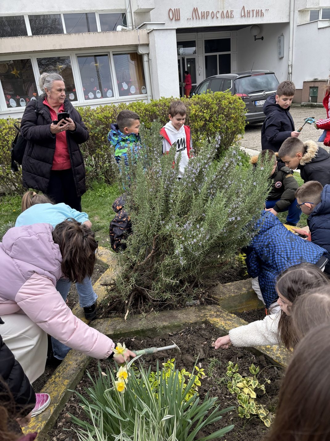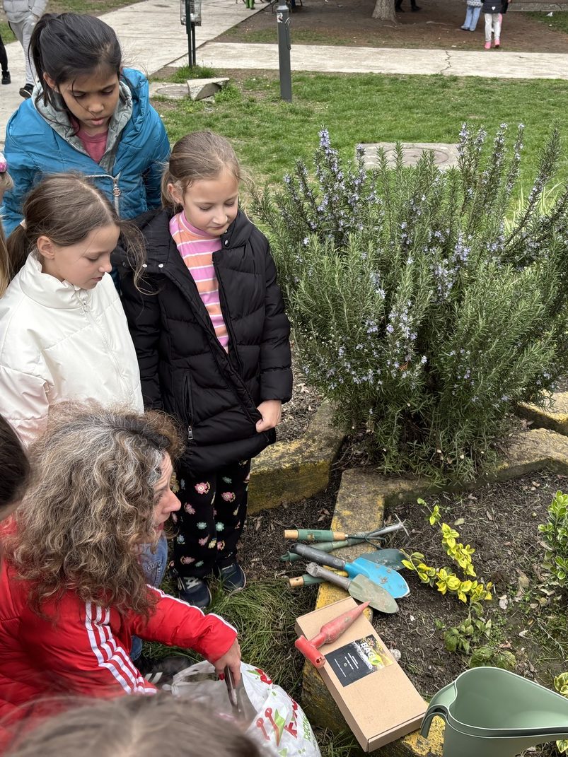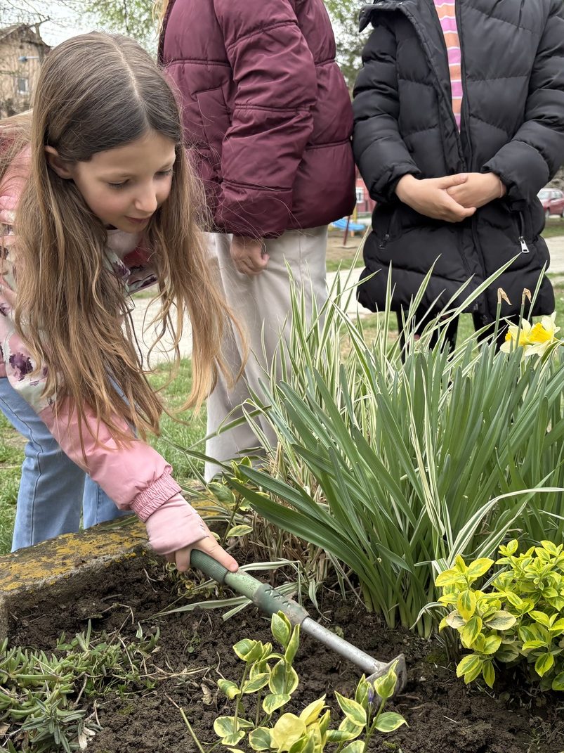 Ми смо данас (ученици II-4 и учитељица Милица Бањац Добромиров) земљу прекопали, уситнили и посејали семена захваљујући акцији “Баци нешто лепо“.