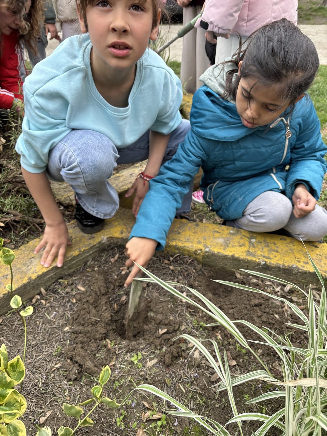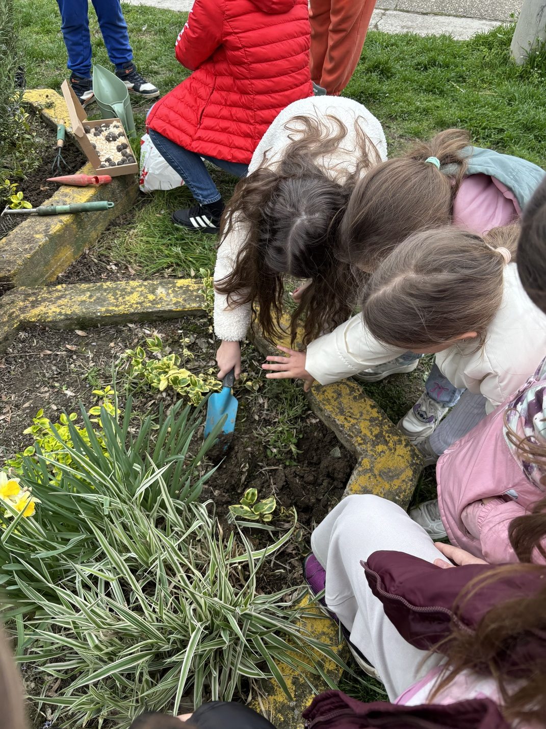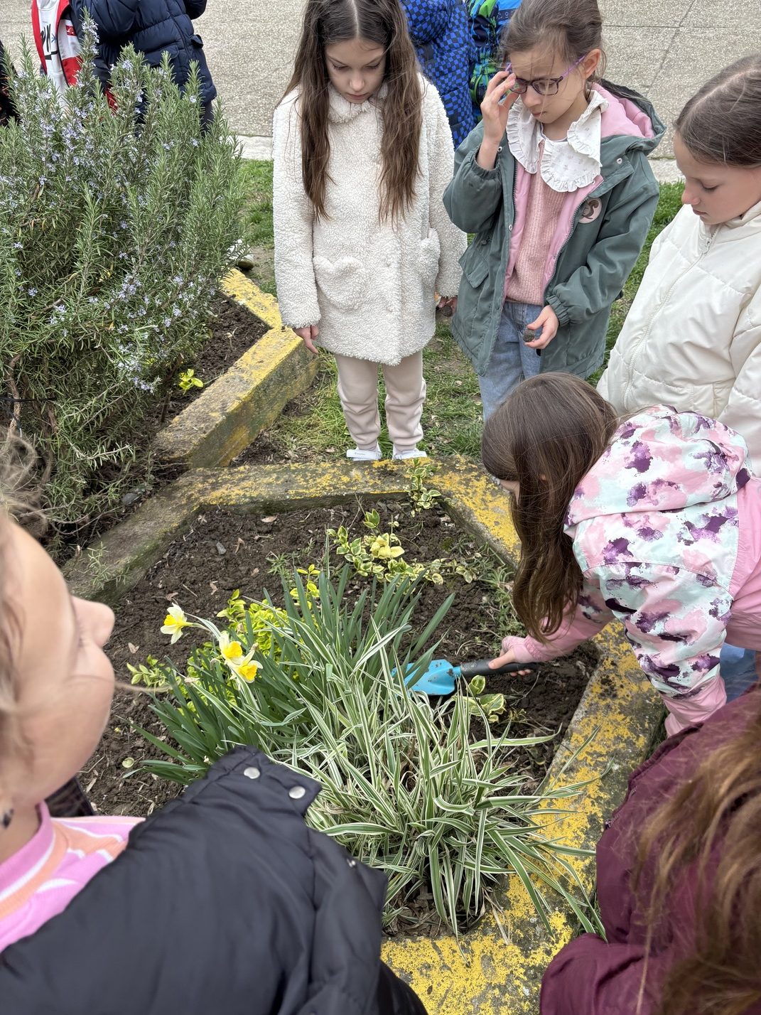 Ми смо данас (ученици II-4 и учитељица Милица Бањац Добромиров) земљу прекопали, уситнили и посејали семена захваљујући акцији “Баци нешто лепо“.