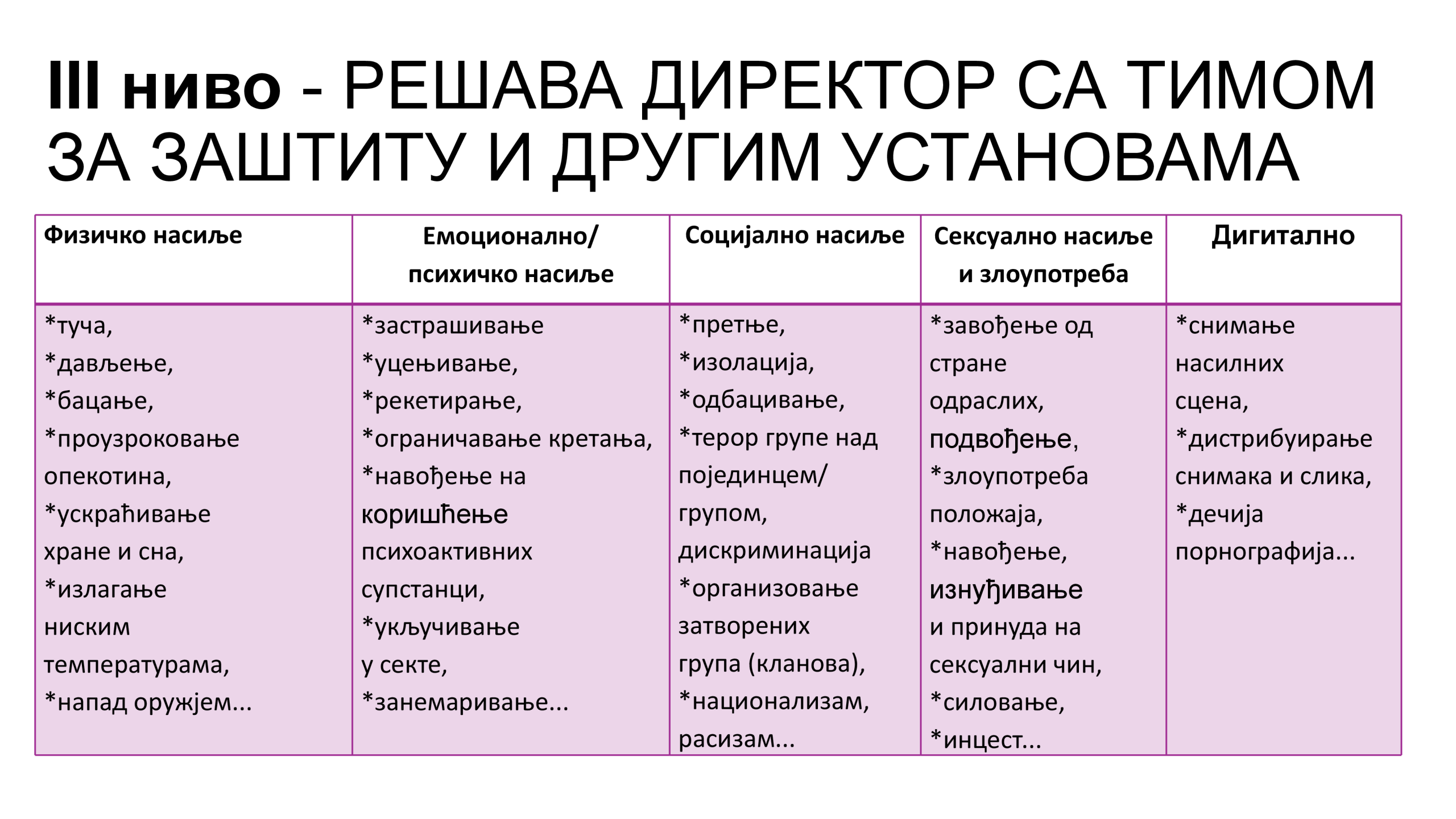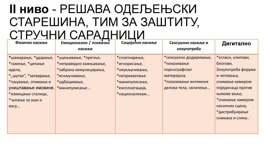 Нивои, врсте и облици насиља и интервенција по нивоима