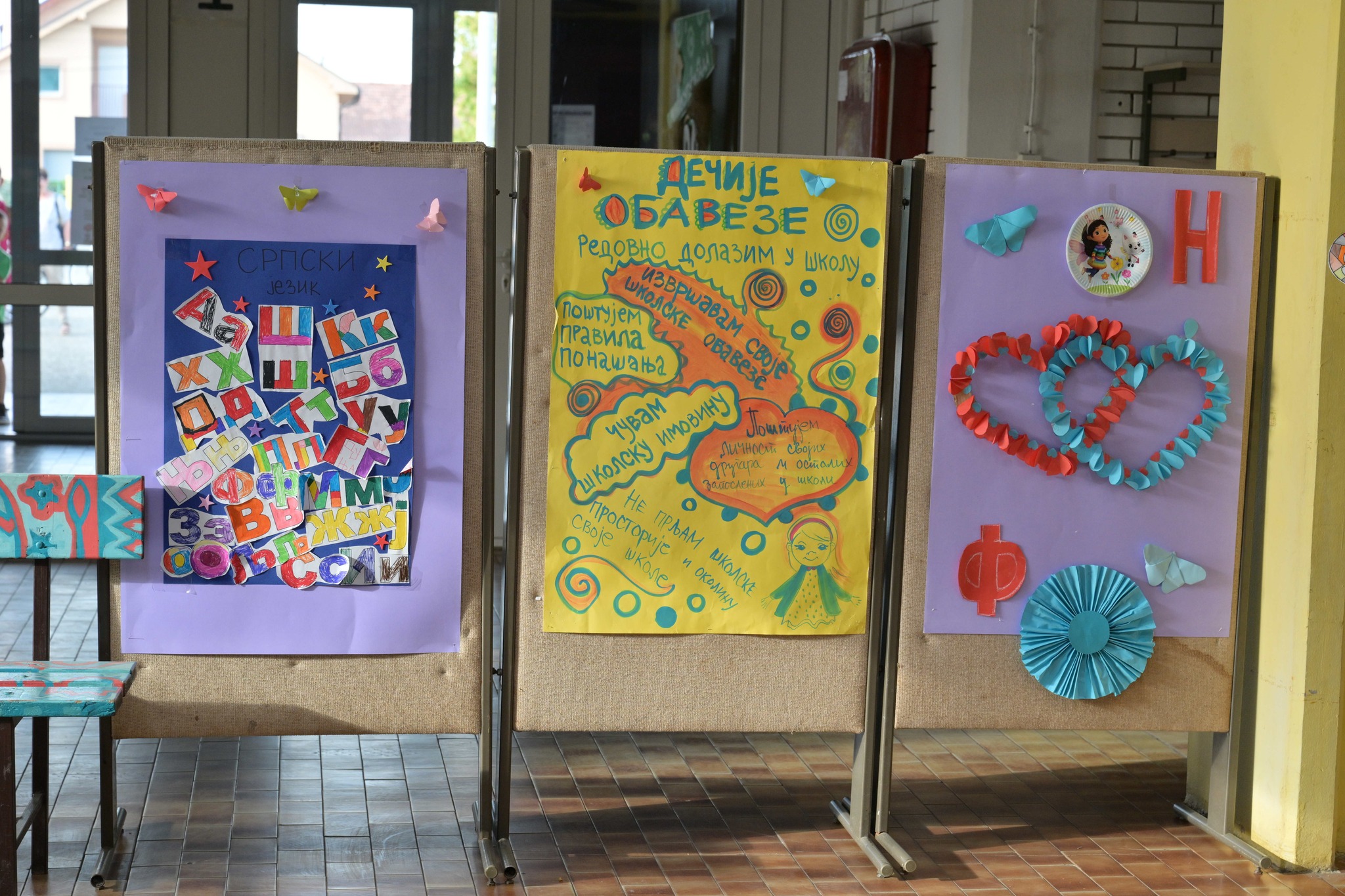Изложби су се, као и сваке године, придружили и наши најмлађи пријатељи из вртића „Биберче“, „Меда“ и „Коцкица“, чији су радови унели додатну радост и боје у школски простор. ![]()