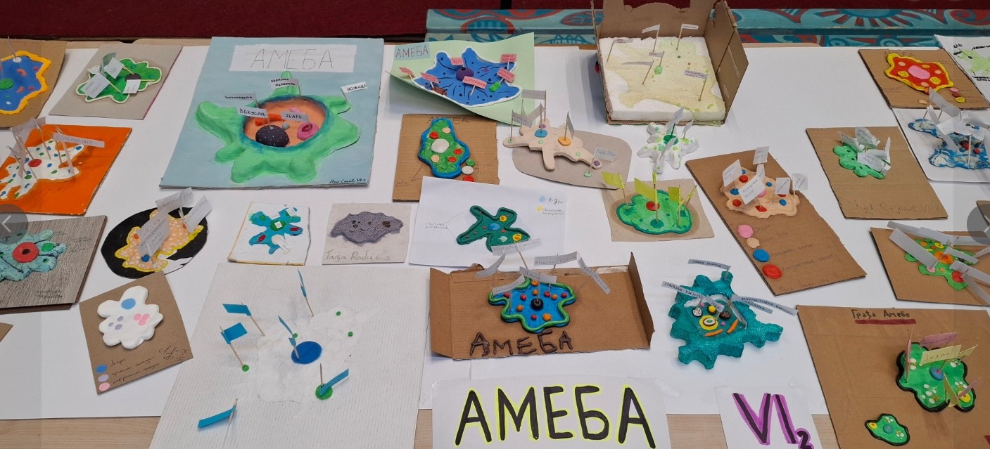 Ученици 5. разреда су на часовима биологије учили о ћелији, а ученици 6. разреда о амеби. Своје знање су применили на практичним радовима.